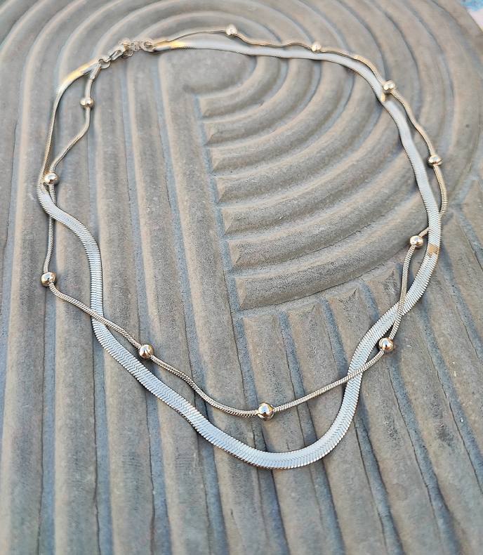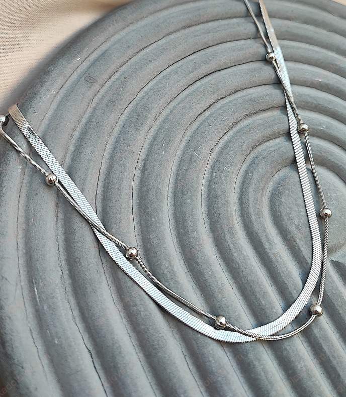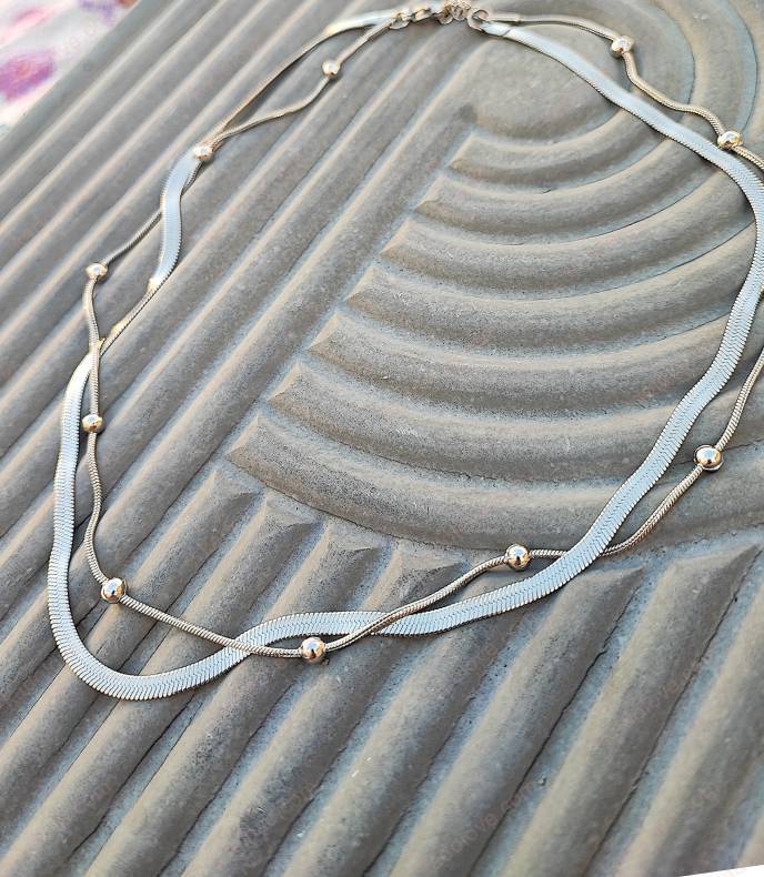گردنبند دو لاین استیل دخترانه مدل ماری و گوی