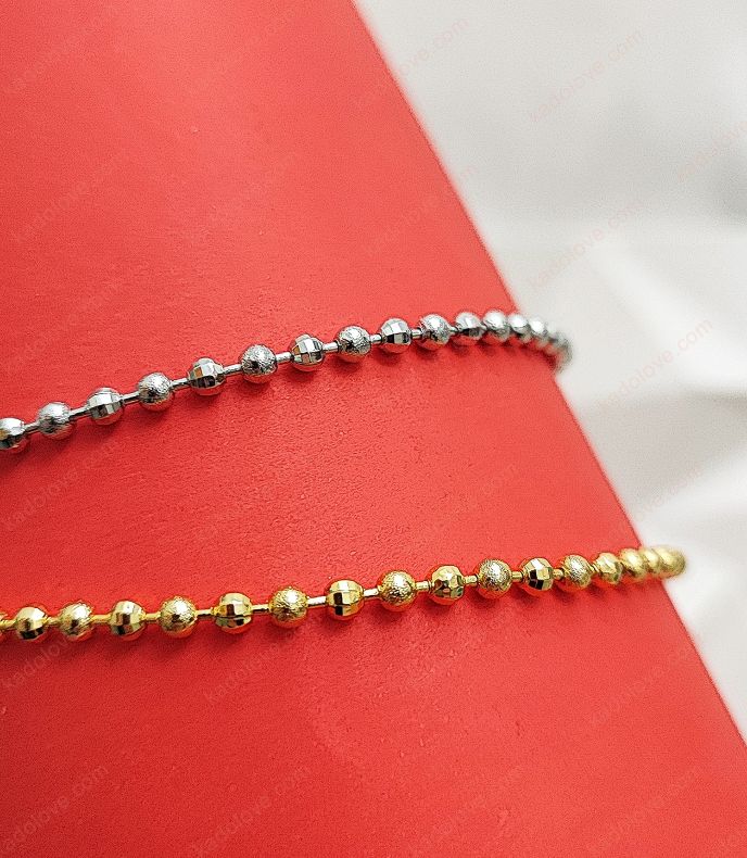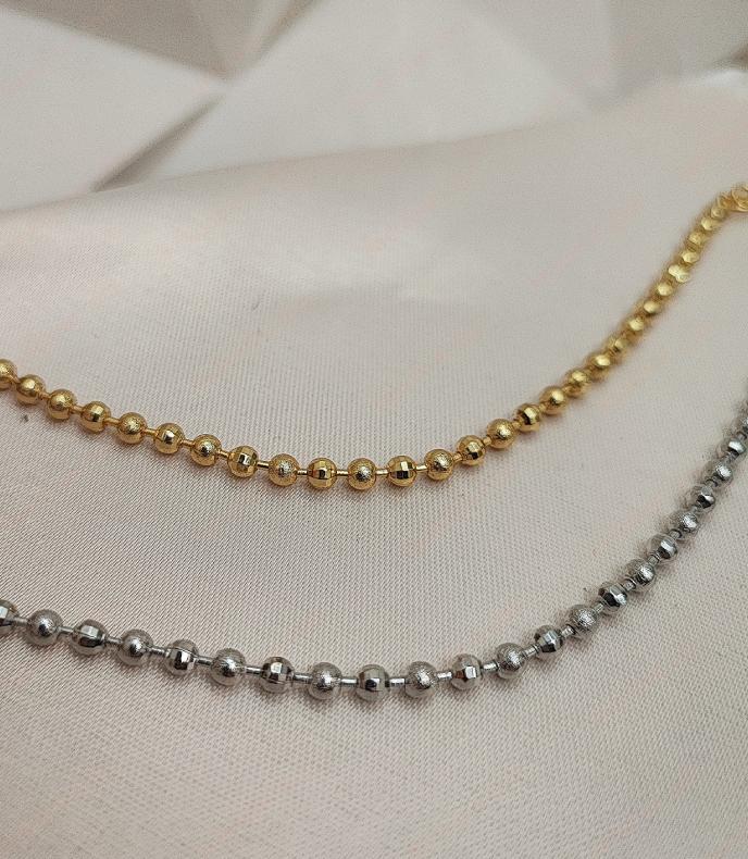 پابند ریسه ای توپی ریز تراش دار، مدلی بسیار زیبا و ساده برای عزیزانی که به دنبال زیورآلات ساده و همیشه ترند هستند. این مدل از جنس استیل رنگ ثابت است، دو رنگ طلایی و نقره ای دارد و می تواند هدیه ای عالی برای عزیزانتان باشد.